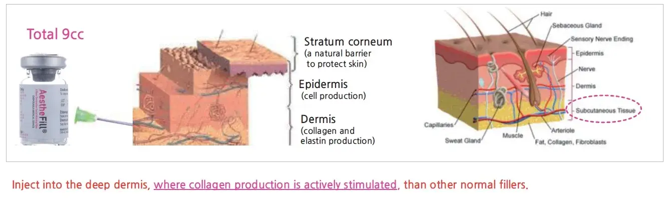 Unlike traditional HA fillers that deliver immediate but temporary volume, Aesthefill works by stimulating the body’s natural collagen production, allowing results to develop gradually and remain stable over time. This makes it an ideal option for practitioners and buyers who value natural-looking outcomes and durability.