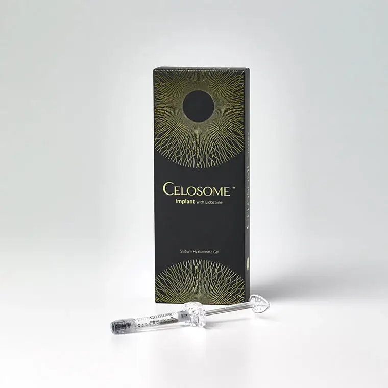 Celosome Implant is a cross-linked hyaluronic acid dermal filler formulated for injection into the deep dermis or subcutaneous layer.
