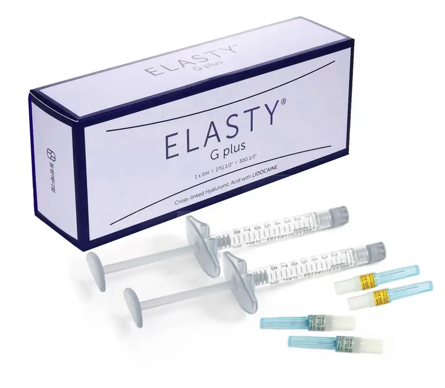Within the Elasty filler family, different formulations are available including Elasty G Plus and Elasty G Plus filler variants designed for deeper wrinkle correction and structural support.