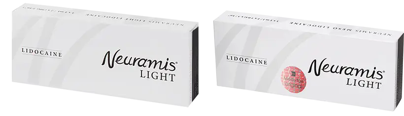 Variants such as neuramis light lidocaine include lidocaine to improve patient comfort during injection procedures.