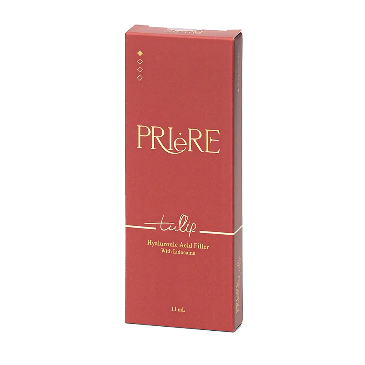PRIERE Tulip is a cross-linked hyaluronic acid dermal filler designed for injection into the dermis to improve skin smoothness and reduce moderate facial wrinkles.