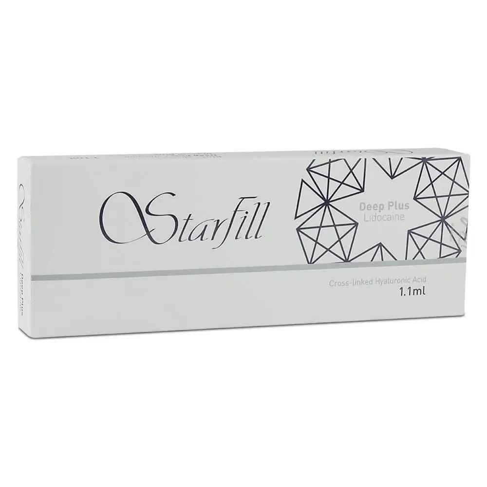 Starfill Deep Plus Lidocaine is a cross-linked hyaluronic acid dermal filler designed for deep dermal injections to correct moderate to deep wrinkles and improve facial contours.